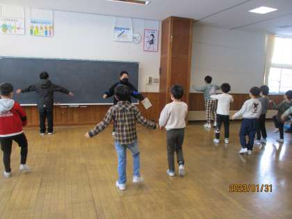 おわらの練習週間2日目です。6、5、4年生が下級生におわらを教えてくれています。来年度に向けて、よりきれいに踊れるようになりたいものですね。