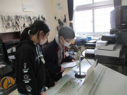 給食時間には、放送委員会、給食委員会、運動委員会、運営委員会の担当者が、それぞれ放送していました。どの委員会も、みんなに伝わるように大きな声ではっきりと放送していました。
