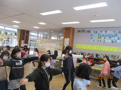 おわらweekも後半に入り、輪踊りを始めました。5年生さんからのアドバイスをもとに、指先をそろえ、足の動きが正確にできるようになってきました。