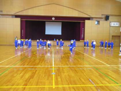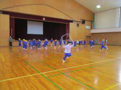 今、体育では、縄跳び運動や跳び箱運動に取り組んでいます。今日は、駆け足飛びを行いました。上手に駆け足飛びをすることができました。