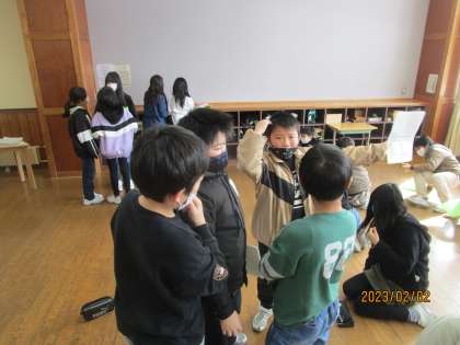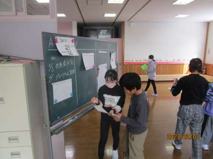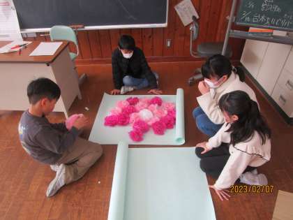 5年生は卒業を祝う会に向けて、各チームごとに準備に取りかかっています。