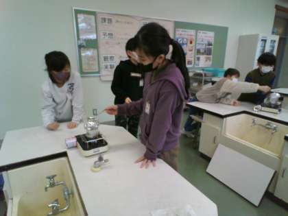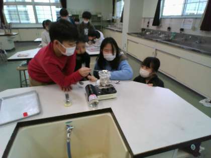 理科の実験をしました。湯気の正体を調べる実験です。スプーンの裏の様子から、湯気の正体を話し合いました。