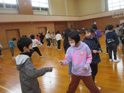 樫尾小学校の2年生さんと「王様ボーリング」をしました。ドキドキしながらも一緒に話した子供たちは、「友達になった!」とニコニコ笑顔で話していました。