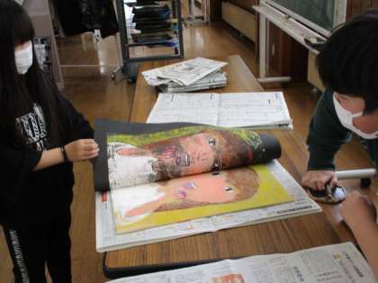 昨日と今日、いよいよ版画を刷りました。今まで初めての彫刻刀で一生懸命彫ったり、色を塗ったりして、進めてきました。どの子も、うまく色が出るようにお願いしながら、丁寧に刷っていました。紙をドキドキしながらめくると、上手に刷れているのが分かり、とっても嬉しそうでした。初めての木版画でしたが、満足のいく作品ができたと思います。
