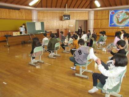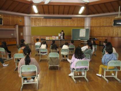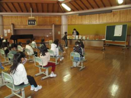 2月22日(水)、八尾図書館の職員の方が学校に来てくださり、竹組、松組それぞれのの学級で「色」「冬」のテーマごとに、ブックトークやストーリーテリング、本の紹介などをしてくださいました。