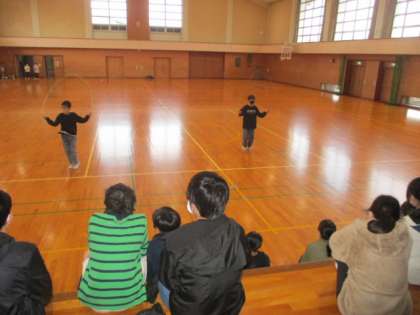 なわとび記録会の決勝戦を行いました。自分の新記録を更新させようと頑張る姿が立派でした。