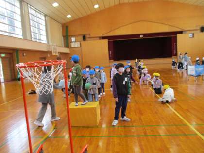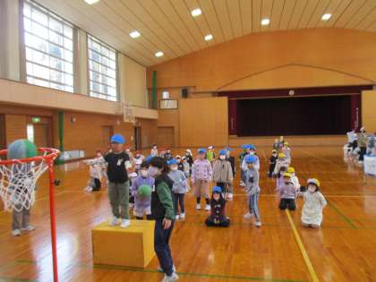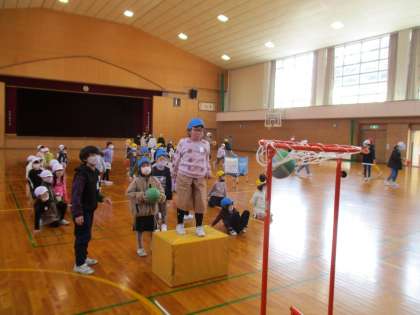 色団ごとに、順番に、一人1回ずつ、ボールをシュートし、1回入ったら1点になるゲームです。