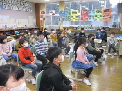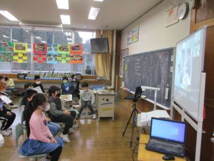 今日は樫尾小学校との交流をミートで行いました。それぞれの学校じまん、ゲーム、質問などをして、楽しく交流することができました。
