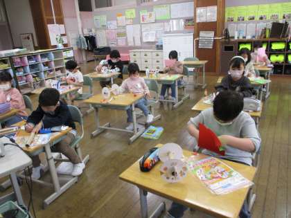 図画工作科で「紙ザラコロコロ」をつくりました。