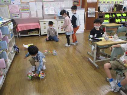 厚紙を車輪の形に組み立てて、飾りを作ってつけました。思い思いに飾りを付けて、素敵な車輪になりました。
