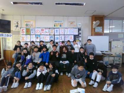 4年生の時にお世話になった先生が、もうすぐ卒業のみんなにお祝いの気持ちを届けに来てくださいました。県外からのサプライズ訪問に大歓声の子供たちでした。