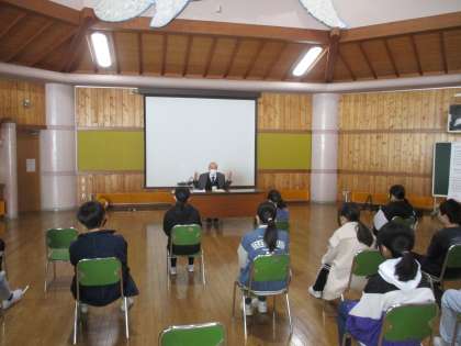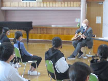 卒業プロジェクトとして、子供たちの希望で、校長先生に特別授業をしていただきました。これからの人生で指標になりそうなお話を真剣な表情で聞き入っていました。最後にはギター演奏や歌のプレゼントまであり、感激していました。忘れられない貴重な時間を過ごすことができました。