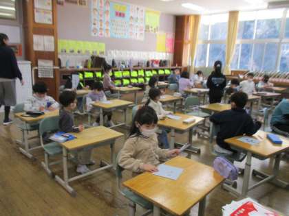 初めて使う水筆に、子供たちは「おもしろい」「緊張する」「もう一度やってみたい」など、様々な感想を聞かせてくれました。