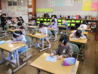 今回の書写では、「水筆」を使って、毛筆の体験をする活動に取り組みました。
