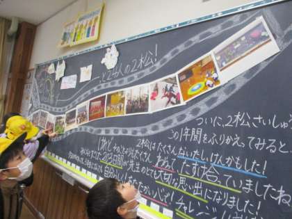 ついに2松最終日です。この1年間たくさんのことがありました。2松は、時には喧嘩をして涙を流し、時には思うようにいかず気持ちが沈むこともありました。しかし、その都度助け合って、励まし合った子供たち。そして、悲しく涙を流すこと以上に、たくさんのキラキラ笑顔があふれた1年間でした。