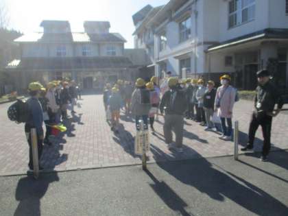 今日から、1年生も集団登校です。地域の方に見守られて歩いてきました。