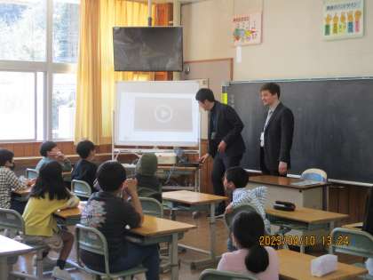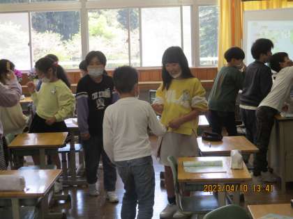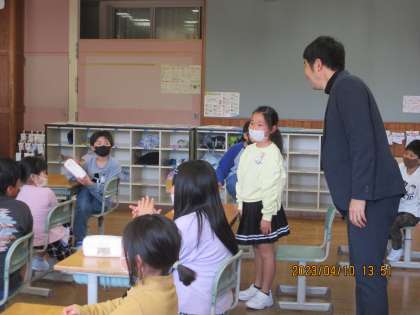 今週、初めての外国語活動がありました。子供たちは、昨年度教えていただいた、コルトン・コルゲル先生との再会を喜んでいました。いろいろな国の挨拶を学び、友達と挨拶を交わして楽しんだり、英語で自己紹介したりしました。これからの学習も楽しみですね。