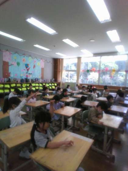 自己紹介を終えると質問したいと手を挙げる子供たちです。お友達に興味津々な様子でした。