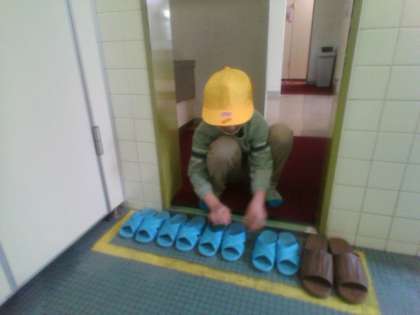 みんなが気持ちよく過ごすために、一人ひとりが自分でできることを考えて行動しています。トイレのスリッパを並べたり、本を並べたりして整理整頓をする子供たちの姿が見られました。
