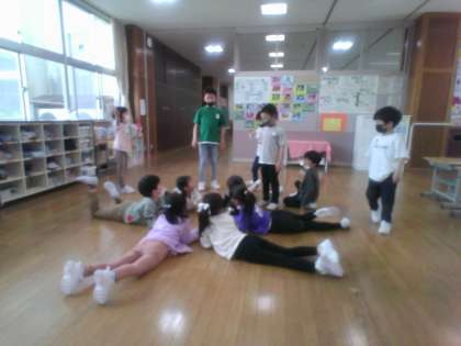 木曜日のたつのこタイムは自由時間です。今日は、6年生のおにいさんと大根ぬきをしたり、進んで掃除をしたりする子供たちでした。仲良く遊んでいます。