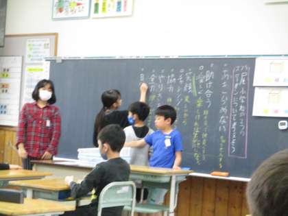 どんな言葉を入れたらよいか、子供たちからたくさんのキーワードが出ました。