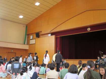 囃子の演奏後、学年の代表の子供が感想を述べました。