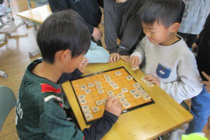 今日は雨が降り外で遊ぶことができませんでしたが、将棋や縄跳び、図鑑で植物調べなどできることを探して遊んでいました。