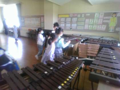 学校探検では、音楽室も探検しました。