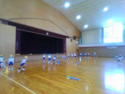 ボールを投げる練習をしました。「遠くに投げるためにポーンと投げるよ」「左手も挙げるといいよ」とコツを教え合う子供たちでした。