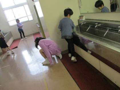 授業後には、廊下の水を拭いたり、洗面所の汚れを落としたりするおたすけレンジャーがたくさんいました。