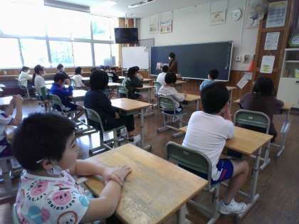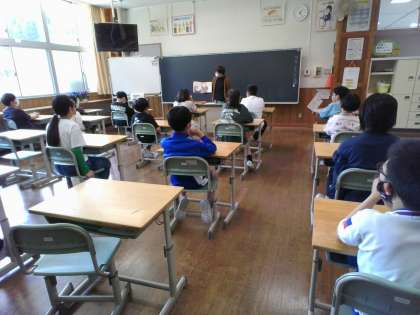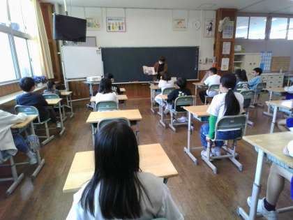 司書の先生から本に関することをたくさん教えていただきました。GW前に、ちょっと厚い本を読んでみようかなと思った子供たちでした。