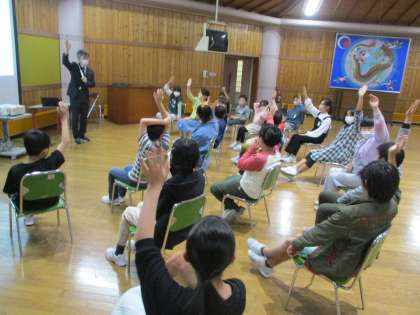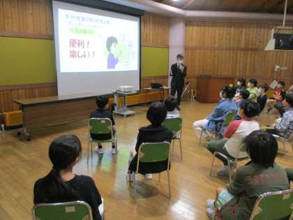 インターネットやSNSの利用の仕方について講師の方に教えていただきました。「どこまでが個人情報なのか」「なぜ写真や動画をネット上で公開すると危険なのか」など、様々な事例を基に考えました。