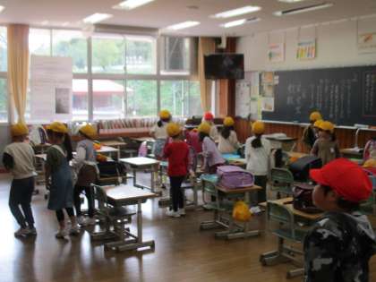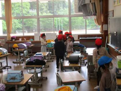 今年の運動会では、2年生は「学年リレー」に取り組みます。色団全員で、バトンをつなぎます。連休明けの8日、それぞれの色団に分かれて、だれが、どの順番で走るかを考える時間を取りました。昨年度は、「自分たちで整列して入場、競技、退場する」ことを頑張りましたが、今年度はさらに、「自分たちで考えてより良い自分たちを目指す」ことを目標の一つに加え、頑張ってみようと思っています。写真は、それぞれの色団で順番を相談している場面です。