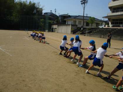 綱引きの練習では、各団でリーダーや旗手を担当する人や、競技の並び方を自分たちで相談して決めました。今日は入場から退場までの動きを練習しました。実際に綱を引いてみて、子供たちのやる気が高まってきたようでした。