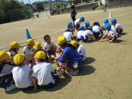通し練習を終えた後、各団作戦タイムが始まりました。グループのメンバーや並び順を変える団、タイムをはやくするためのコツを話し合う団、それぞれの団が一生懸命話し合っています。