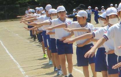 樫尾小学校の仲間と共に、全校でおわらの練習を行いました。