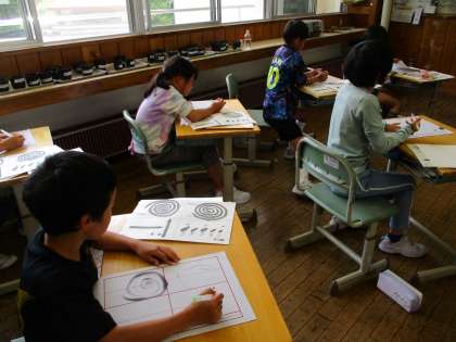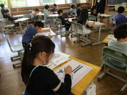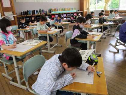 3年生から初めての筆を使った学習が始まります。今日は水筆を使って、筆を使う感覚を感じました。