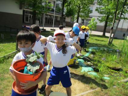 この学習では、今日を始まりとして、これから収穫まで、よりよい野菜のお世話ができるように、調べたり考えたりする学習に取り組んでいきます。保護者の皆様には、子供たちの野菜の購入にご協力いただき、ありがとうございました。また、今後も、子供たちはいろいろとお願いするかもしれませんが、まずはしっかりと子供たちの思いを聞いていただき、相談にのっていただければと思います。