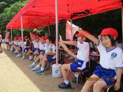 他の学年の種目では応援に熱が入りました。団席から大きな声で「がんばれ」と叫んでいます。