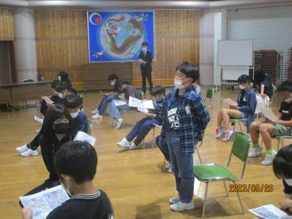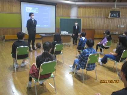 「租税って何だろう?」「税がなかったらどんな社会になるんだろう?」と疑問を挙げていた6年生は、話を聞いたり動画を見たりして学習しました。