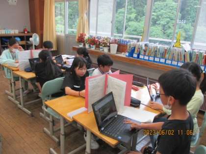 4年生の総合的な学習の時間では、おわらについて学習をしています。始めは、おわらについて自分たちが知っていることを話し合いました。町によっておどりや衣装が全然違うことや初めて知ることがあり、驚きながら興味深く話を聞いていました。
