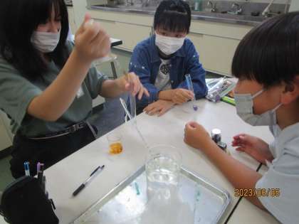 「ご飯は口の中で別の物に変化しているのか?」そう考えた6年生は、ヨウ素液を使って調べました。
