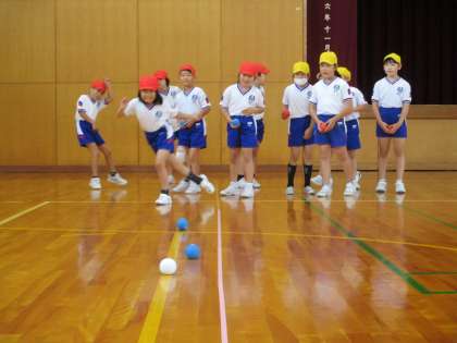 チームごとに投げ方を工夫したり、友達の良いところを伝えたり、チームで取り組む姿が見られました。
