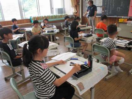 習字の学習では「トン・スー・トン」に気を付けながら書いています。筆を置く時、まっすぐに書く時、最後のとめる時、一つ一つ意識しながら取り組んでいます。
