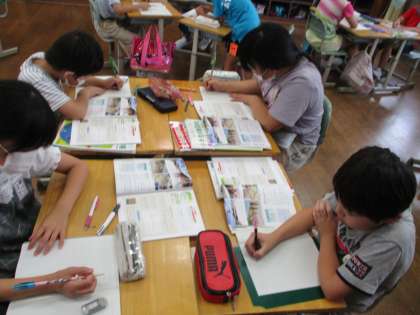 社会科では、「高い土地のくらし」について学習しています。子供たちは、教科書や資料集、chromebookなどを使って調べたことをまとめました。今日は、グループごとに自分がまとめたものを見合ったり、まとめ方のアドバイスをしたりしました。