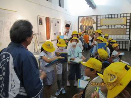 今日は、総合的な学習の時間でおわら資料館に見学に行ってきました。これまでおわらについて疑問に思うことや知りたいことをインターネットや本などで調べていましたが、難しい言葉もたくさんあり、うまく調べられないこともありました。館内を見学するだけでなく、資料館の方に丁寧に説明していただいたり、質問にも答えていただいたりしました。振り返りでは「今まで分からなかったことを知ることができてよかった」「もっと深く知りたくなった」などおわらについてまた一歩詳しく知ることができてよかったです。