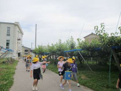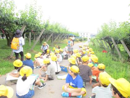 果樹園の様子を観察し、気付いたことを発表しました。そうすると、果樹園の工夫が見つかってきました。
