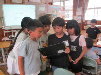 白く大きく育ってきた蚕ですが、茶色くなってしまった子供がいました。友達のピンチに、一生懸命お助けをしようと本やインターネットで調べ物をする姿がありました。
