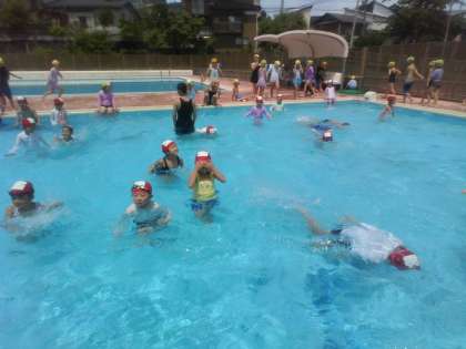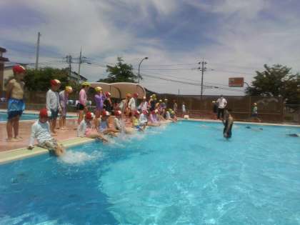 1、2年生でプールに入りました。「みてみて、こんなことができるよ」と潜って泳ぐ様子を見せてくれたり、「きょうのシャワーは気持ちがいいね」と勢いの強いシャワーもこわがらない様子が見られたりしました。