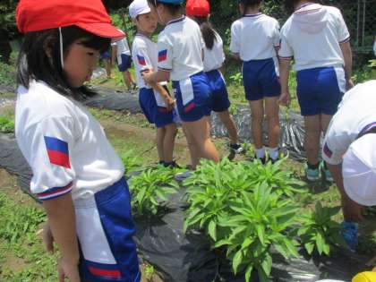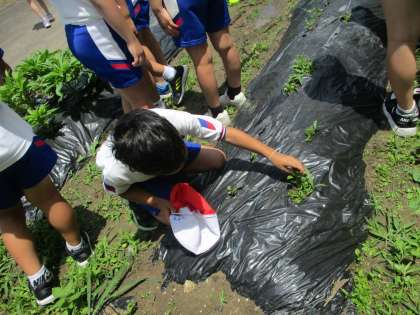 春にたねを植えていたホウセンカが大きく成長しました。「大きくなった!」とニコニコ笑顔で話していました。